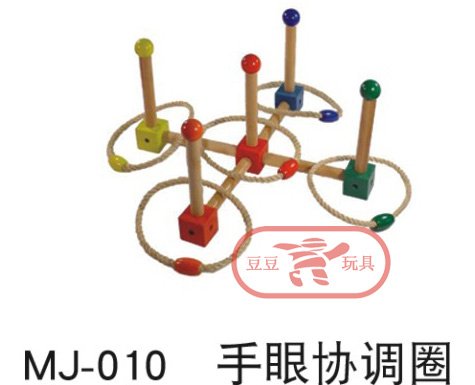 由5个可组装的锣口木柱和5个麻绳套圈组成。锻炼手眼协调能力。